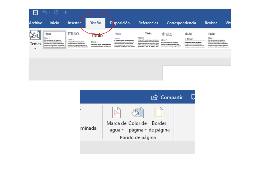 - La pestaña "Diseño", desde donde se accede a los bordes, ¿está siempre visible o aparece bajo una condición específica?