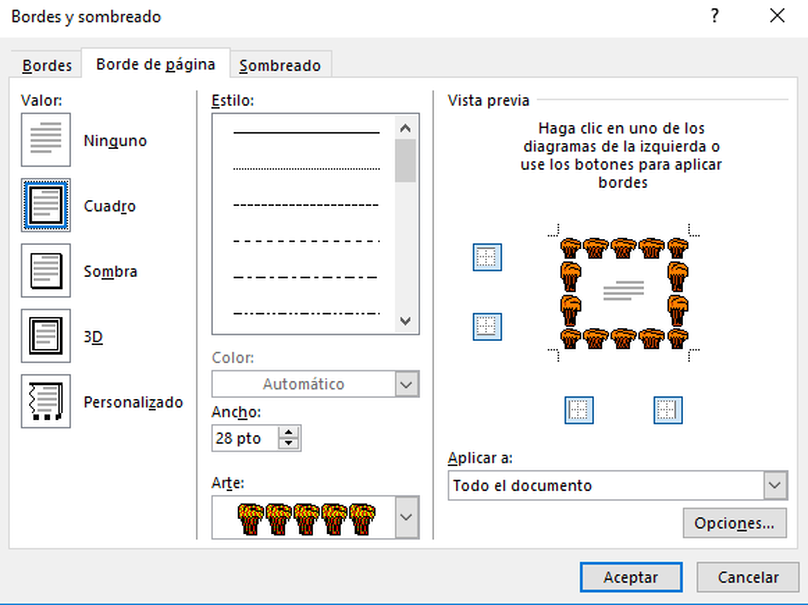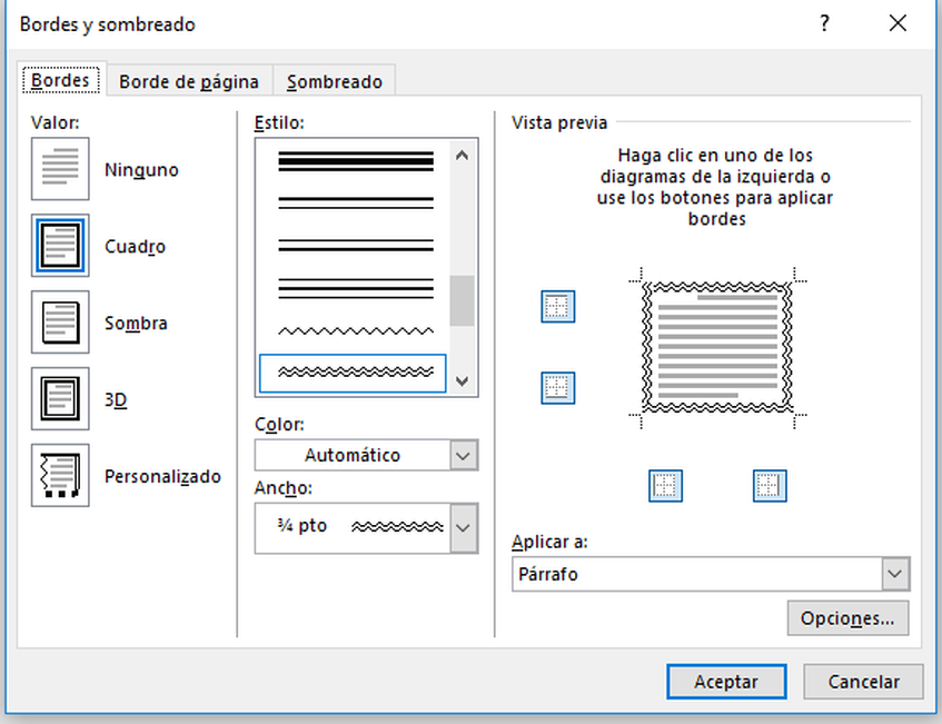 En un documento, también podemos colocar bordes por párrafos como se muestra a continuación